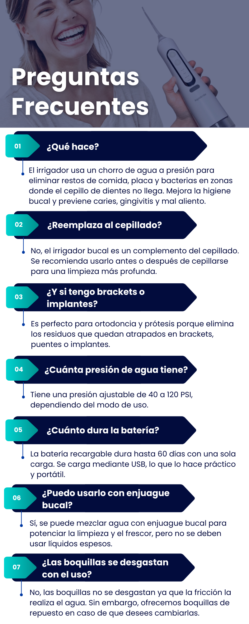 Olvidate del hilo dental incómodo o de cepillarte sin sentirte realmente limpio. Con su tecnología de limpieza profunda, vas a sentir tu boca limpia como después del dentista, todos los días, desde tu casa.